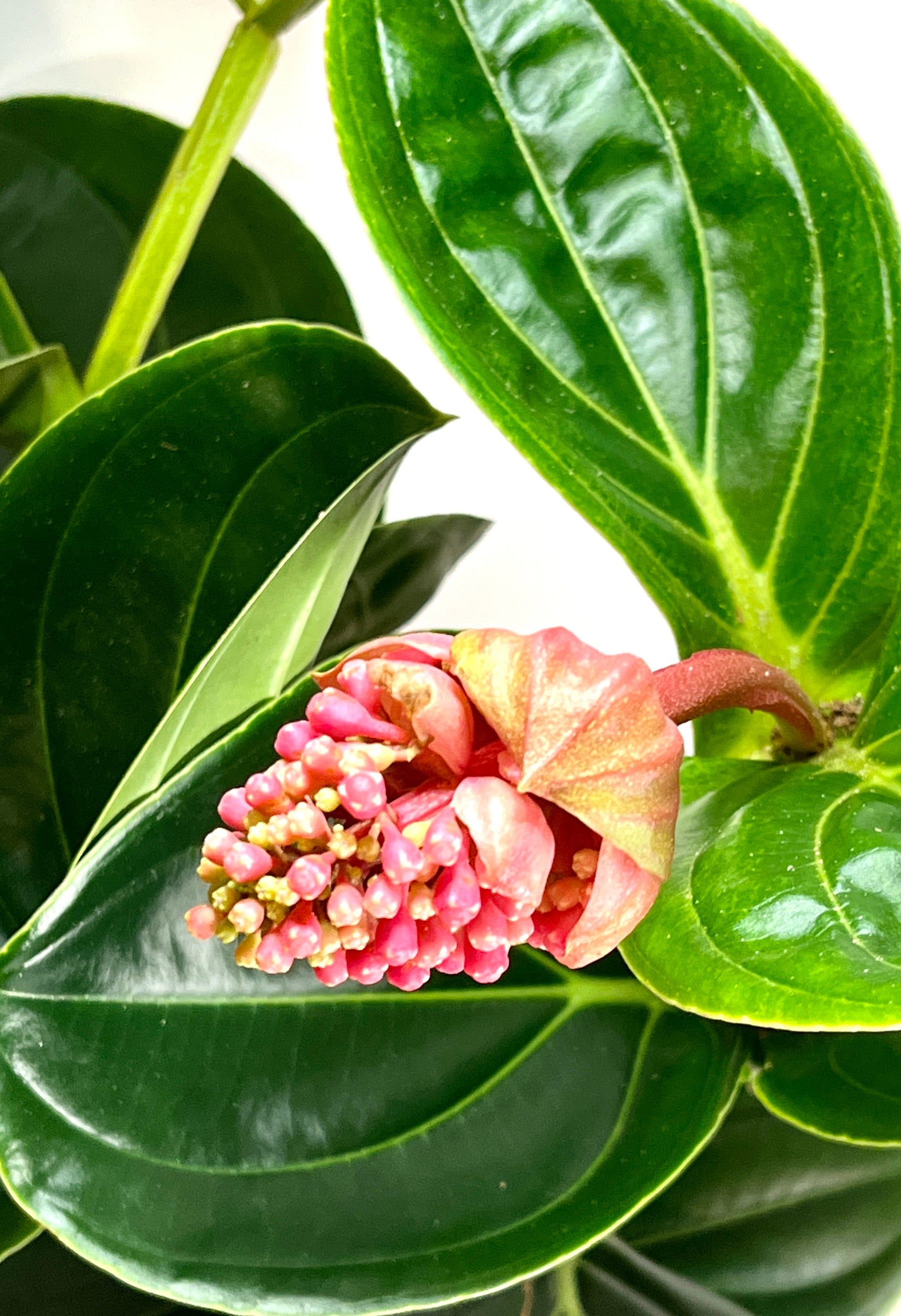A beautiful blooming house plant, the Medinilla will wow you with its unusual shape and stunning flower. This plant is an excellent choice for a hanging basket and will add a touch of colour to your home.