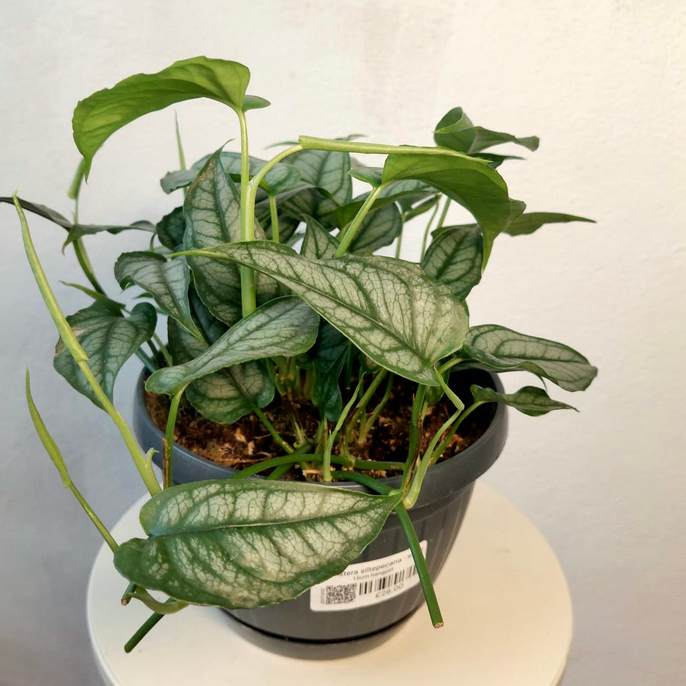 Monstera siltepecana is the underrated star of the Monstera world. With elongated, pointed leaves brushed in silvery-grey and dark green veins, it’s got that moody jungle look — but in a compact, climbable form. In high humidity and bright light, mature plants can even develop fenestrations (those iconic Monstera holes). Perfect for trailing or climbing, this fast grower is an easy favourite for collectors.