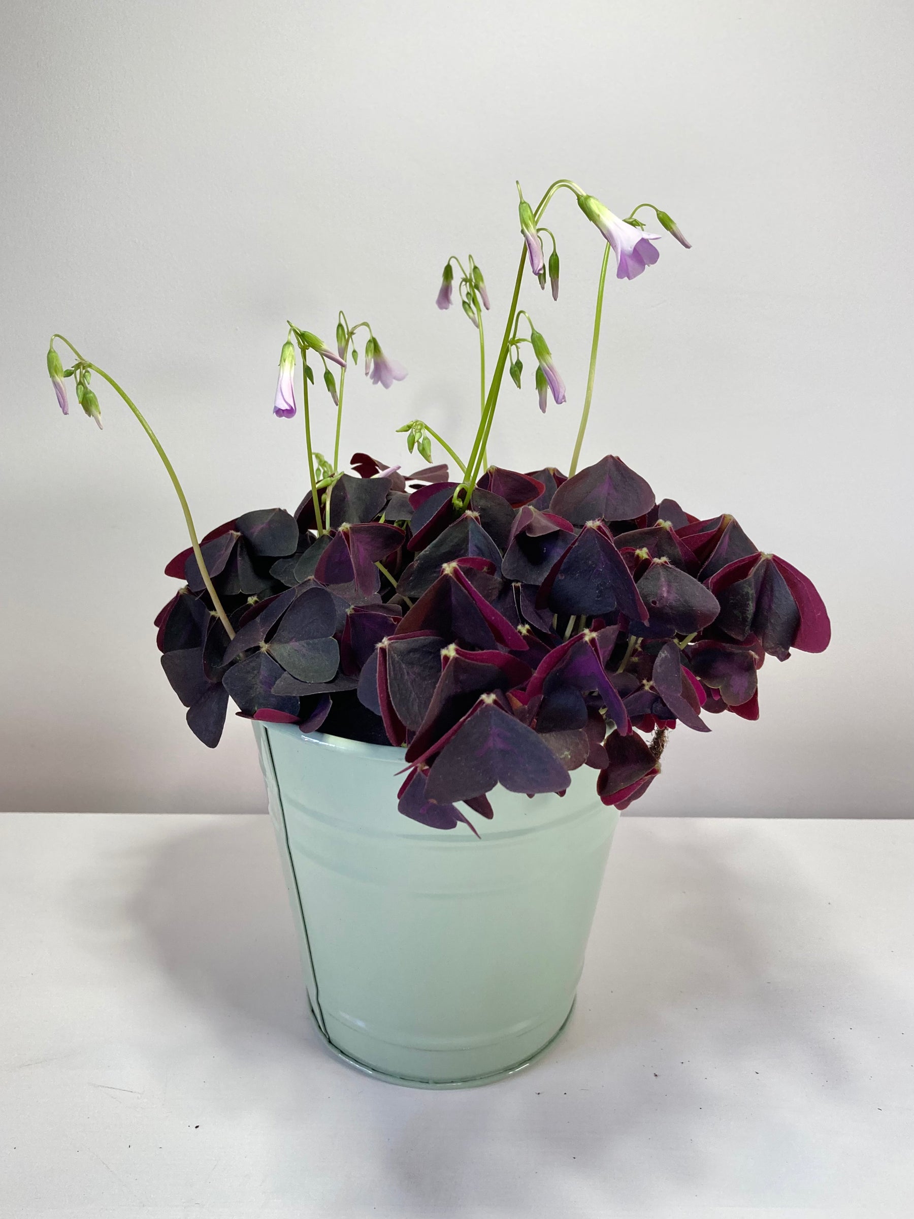A total showstopper, the False Shamrock is all about drama and movement. Its deep purple, triangular leaves open wide during the day and fold up at night, giving it a magical, almost butterfly-like quality. In the right light, it even sends up clusters of delicate pale pink blooms. Easy-care, compact, and full of character — this one’s a favourite for brightening shelves and windowsills.