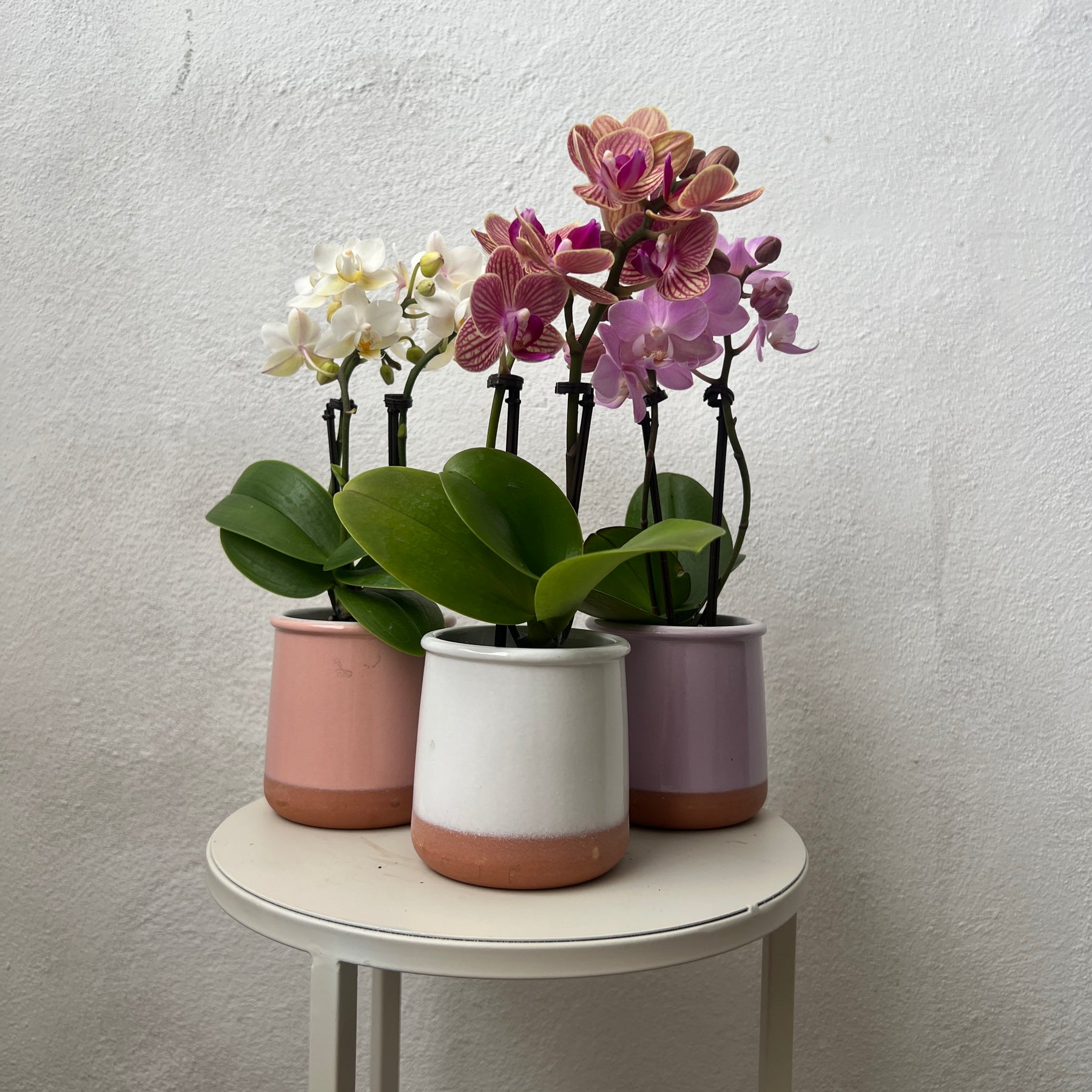 Petite but powerfully elegant—these mini Phalaenopsis orchids are all about long-lasting blooms in a perfectly styled ceramic pot. Each one arrives in flower (or in bud) and adds a sculptural, luxurious feel to shelves, desks, or bedside tables. Low effort, high impact.