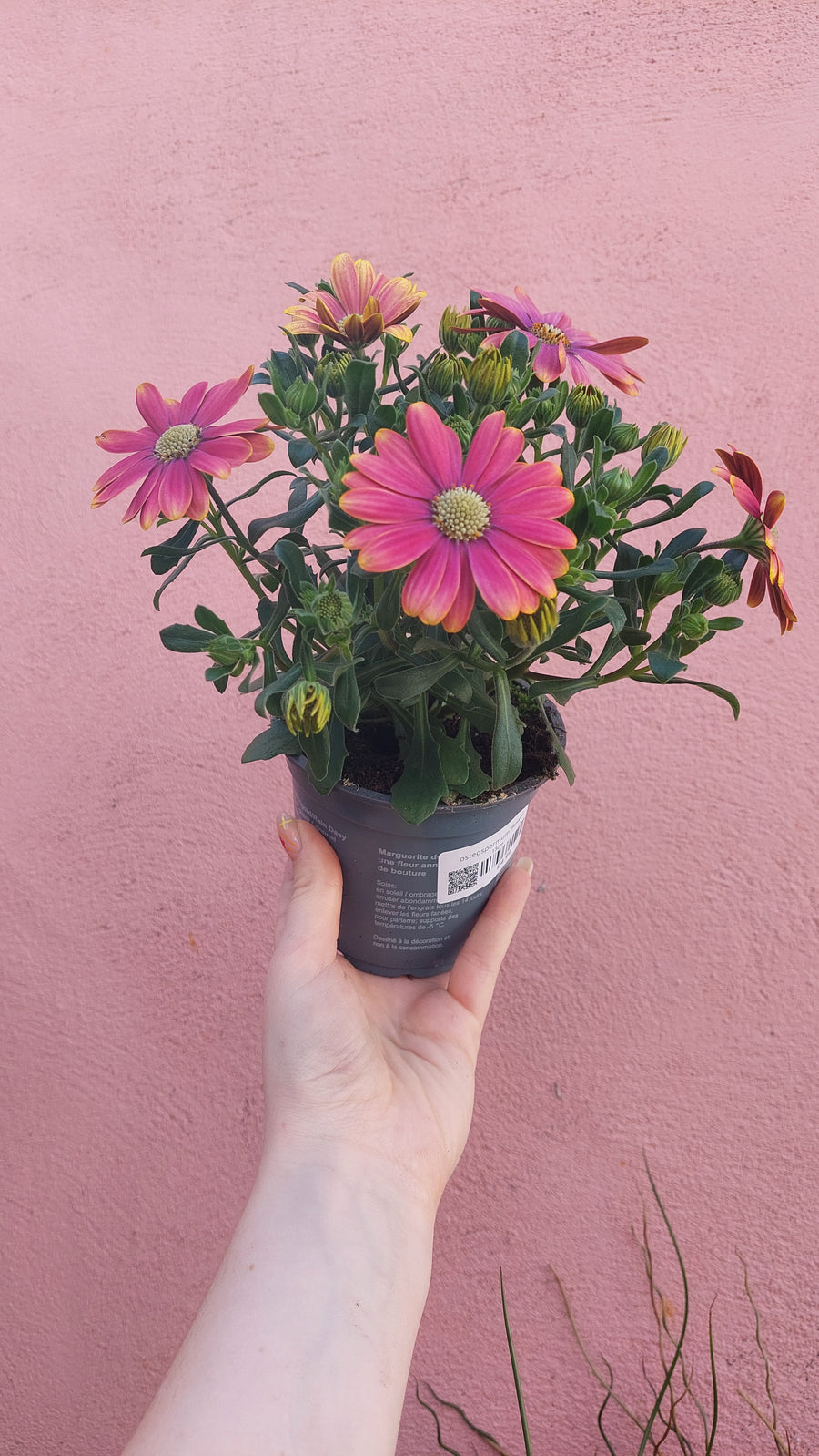 Osteospermum ‘Flower Powerv Pink Sun’: not your average daisy. With its unique spidery petals and bold pink-and-purple hues, this bloom is pure summer energy. It’s the life of the patio – eye-catching, sun-loving, and always ready to party.