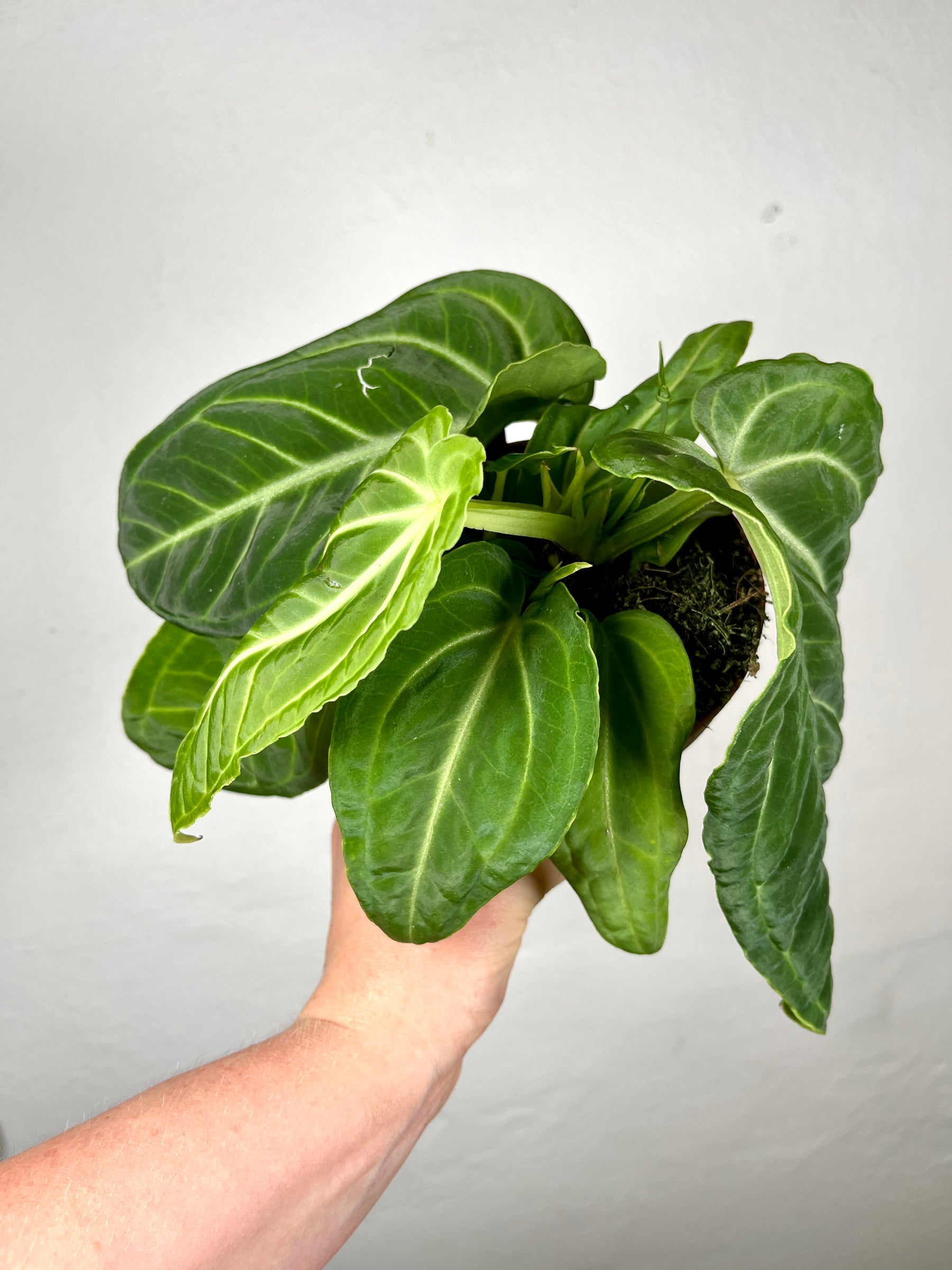 Anthurium villenaorum is here to bring velvety rainforest luxury into your home. With deep green, heart-shaped leaves and bold white veining, it’s a total show-off in the best way. Native to Peru, this rare stunner thrives in humid, dappled light conditions. She’s not the fastest grower, but she’s worth the wait — and surprisingly chill for a plant that looks this extra.