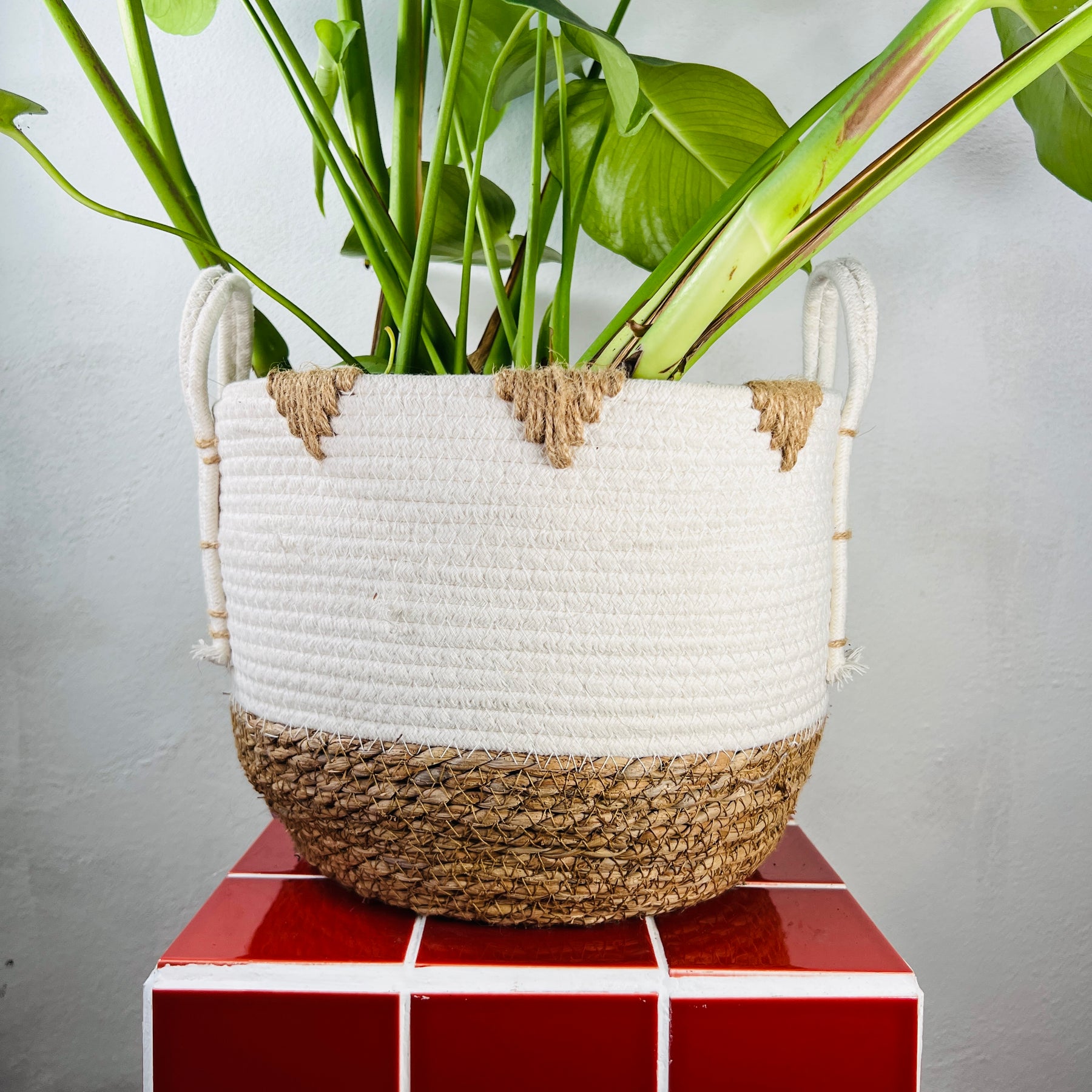 This cheerful white cotton baske is the perfect place to spread some cheer (and a few plants)! Stylish and durable, this basket will keep your blossoms safe and secure until it's time to show them off! Let your plants bloom in style!