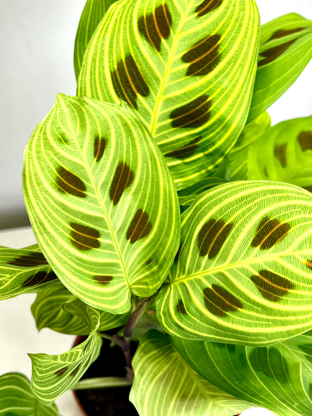 Loves bright, indirect light. Too much sun can scorch its delicate leaves, while low light will reduce contrast in the pattern.