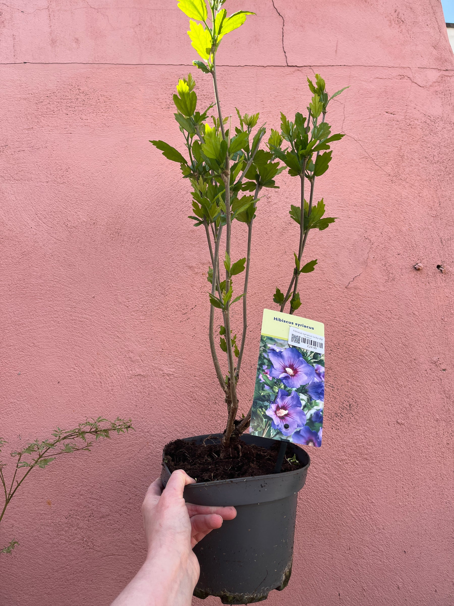 Hibiscus syriacus: the late-summer showstopper. With its bold, exotic-looking blooms in shades of white, pink, purple or blue, this hardy hibiscus is a total mood – tropical looks, but fully UK-hardy. Bees love it, and so will you.