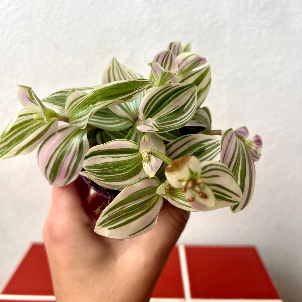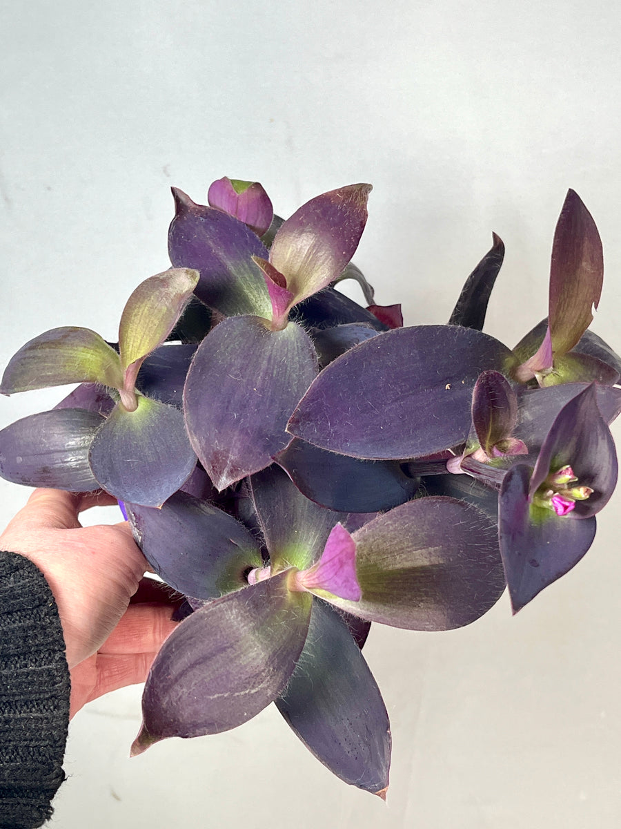 Pinch back the tips to encourage bushier growth. Super easy to propagate in water or soil — snip, stick, grow. Foliage may fade in low light, so keep it near a sunny spot for that punchy purple.