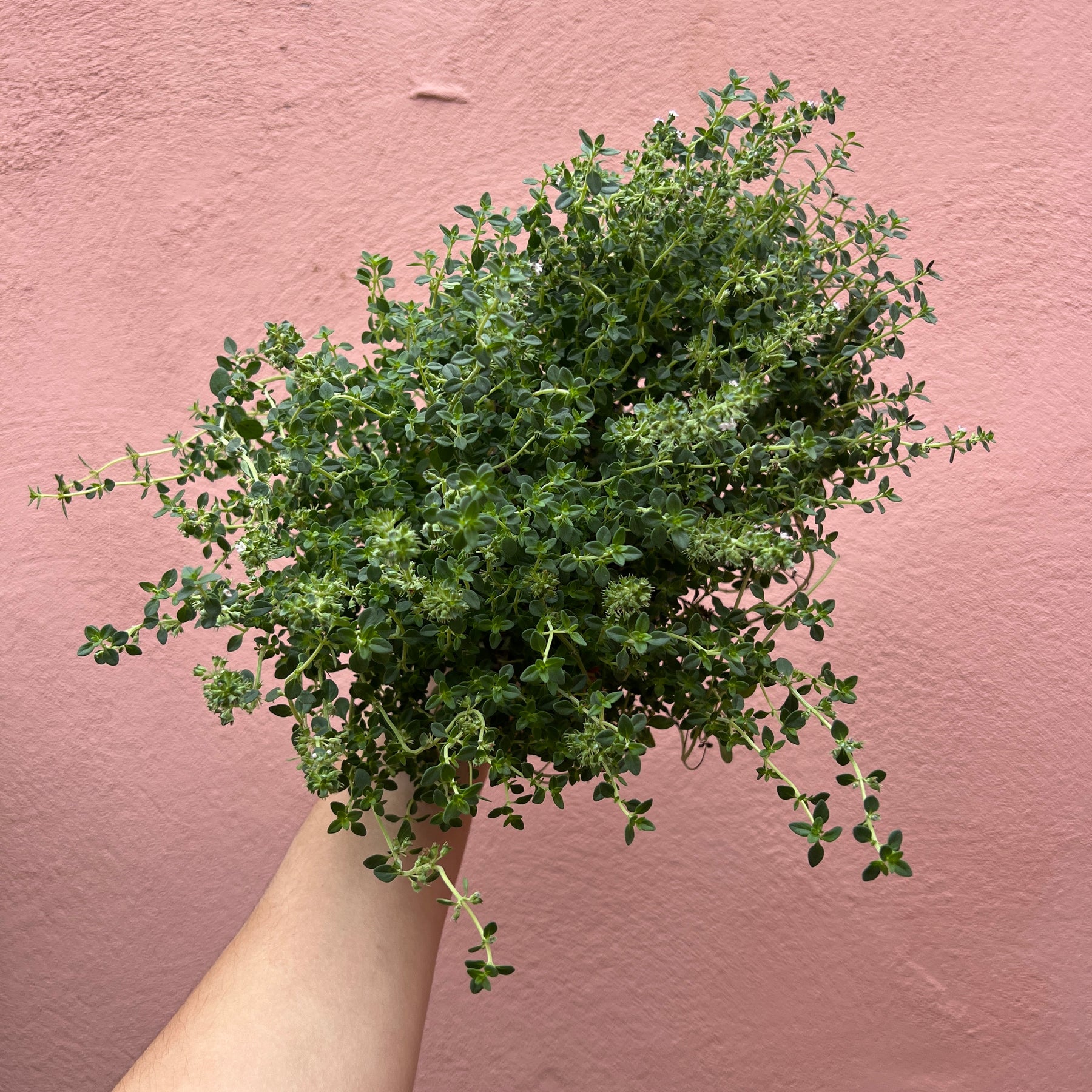 Thymus citriodorus ‘Green’: fresh, fragrant, and totally unfussy. This lemon-scented thyme forms a low-growing mat of bright green leaves that smell like sunshine and go with just about everything – from herb butters to pollinator borders.