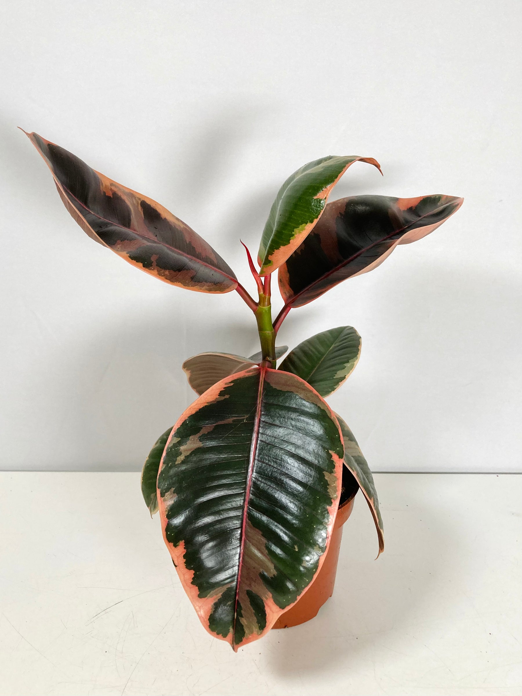 The Ficus Belize is a stunning indoor plant with beautiful pink-toned variegated leaves that can add incredible structural detail to your home.