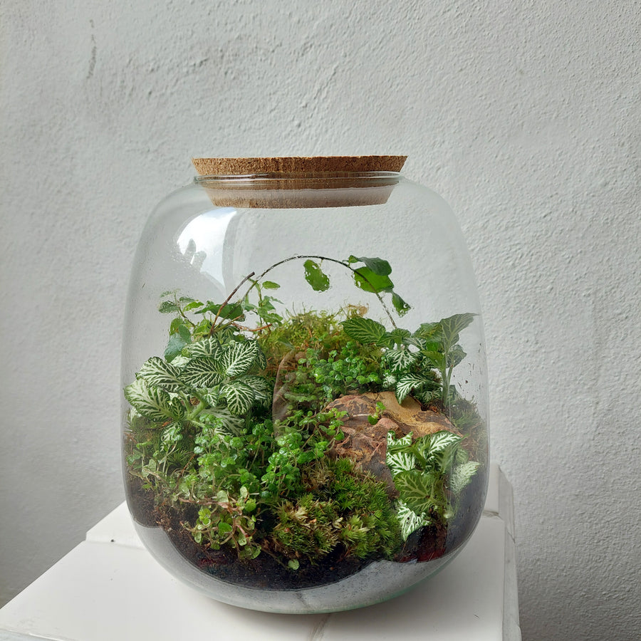 Made in-house and entirely unique, the Nana terrrarium is made with high quality, eco-friendly glass. Caring for your terrarium is super easy- provide bright, indirect light and watch it grow! Watering is generally not required as they are an enclosed ecosystem, however trimming may be necessary in the future. All terrariums come with a care leaflet.