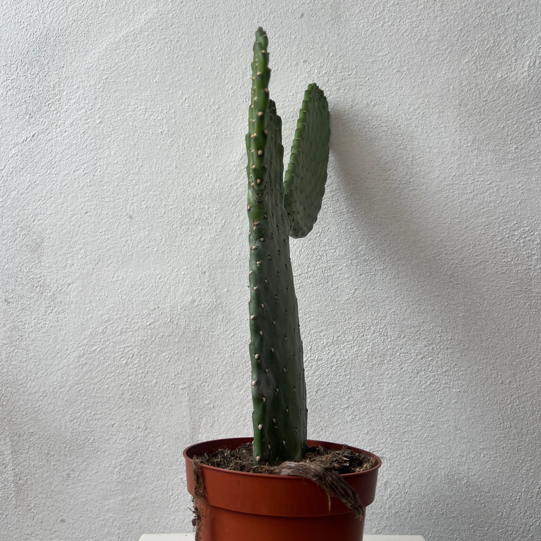 Meet the wonderfully odd Opuntia consolea rubescens, affectionately nicknamed the Road Kill Cactus for its flat, paddle-like stems that splay dramatically as it grows. This sculptural prickly pear relative is perfect for adding desert character to your collection. Its blue-green pads can flush with pink or red tones in strong light, and mature plants sometimes produce showy orange blooms. A true conversation piece for any sunny spot.