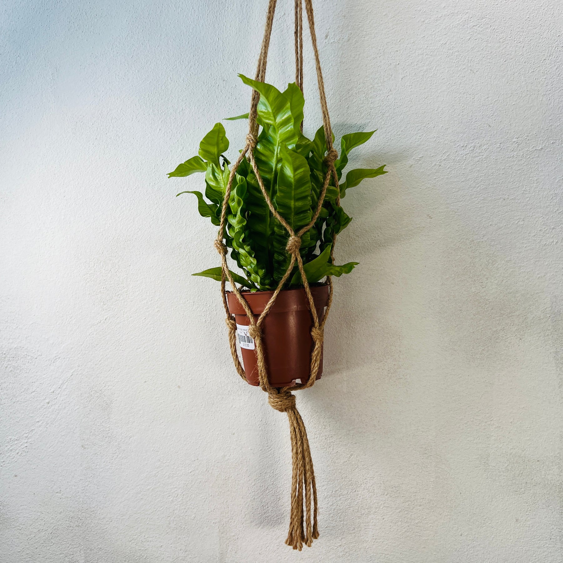 Elevate your greenery (literally). This 90cm macramé hanger is made from natural rope, hand-knotted into a classic boho design that suits any space. Just pop in your favourite pot (fits most 12–15cm pots) and hang it from a hook for instant vertical jungle vibes.