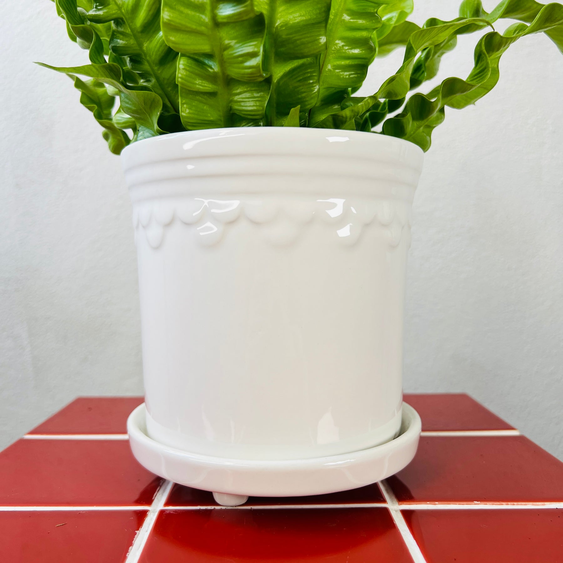 White Scallop Pot with Saucer