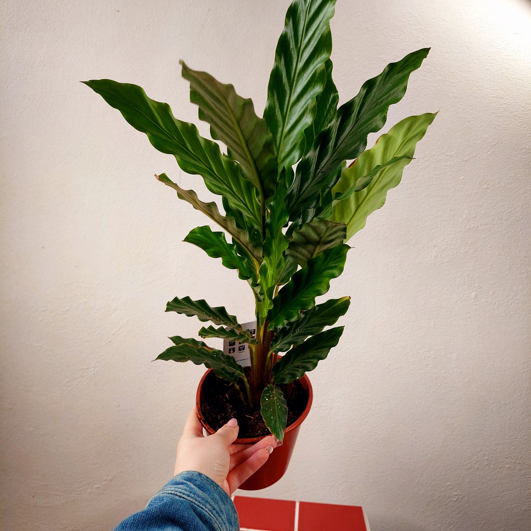 Soft, rippled, and touchably fuzzy—Calathea rufibarba (a.k.a. Furry Feather Calathea or Velvet Calathea) brings gentle drama with long, elegant leaves and rich burgundy undersides. Looks fancy, feels soft, acts a bit fussy—but we love it anyway.