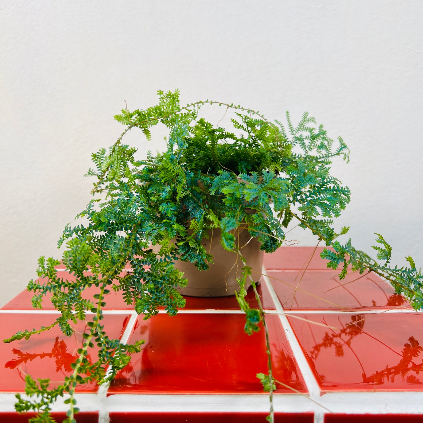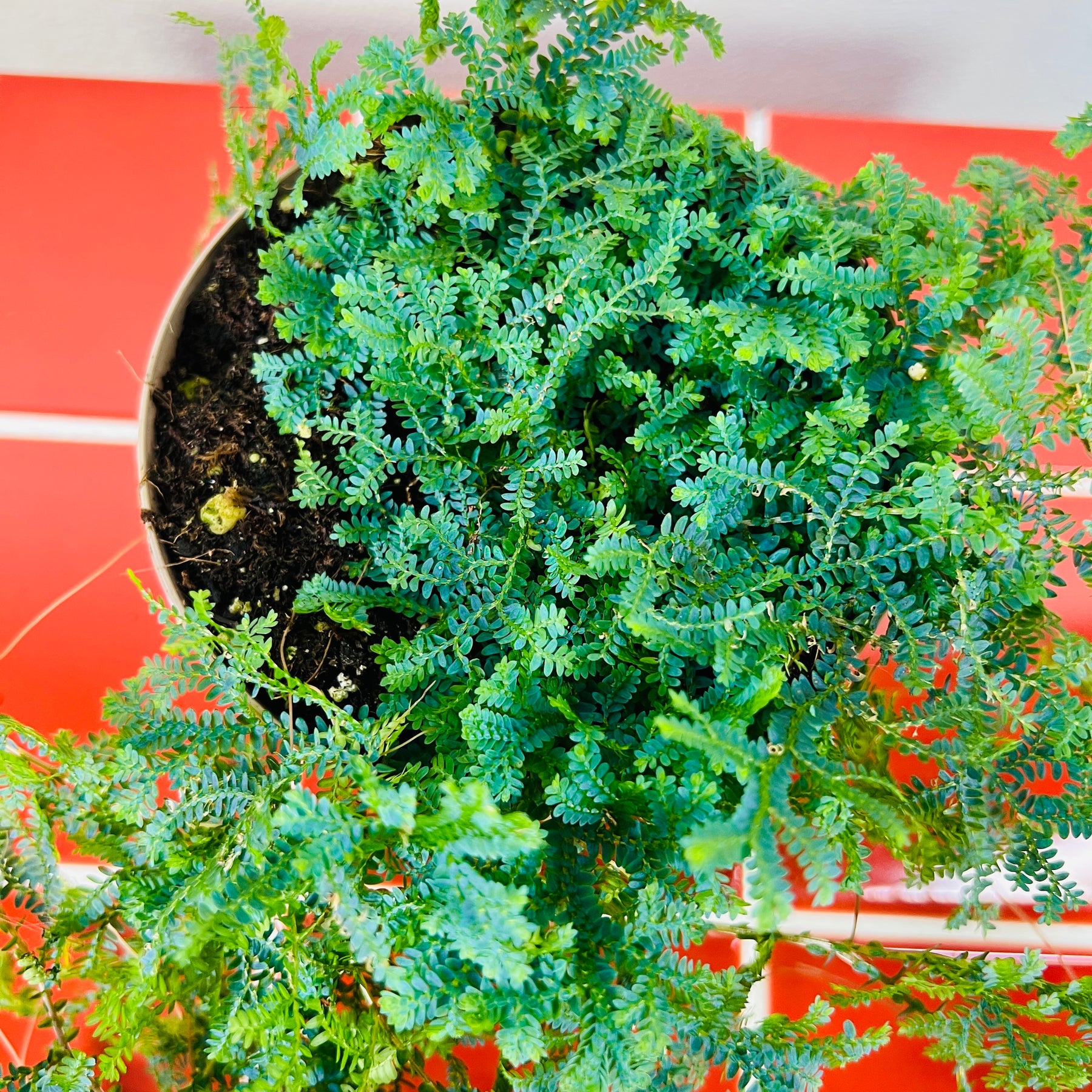 Selaginella uncinata, also called Peacock Fern or Blue Spikemoss, is a magical little plant with a metallic blue-green shimmer that changes with the light. It looks like a delicate woodland fern but grows like a mossy groundcover — perfect for terrariums, steamy bathrooms, or adding a lush vibe to shaded shelves. It’s a humidity queen and thrives in that soft, misty kind of glow.