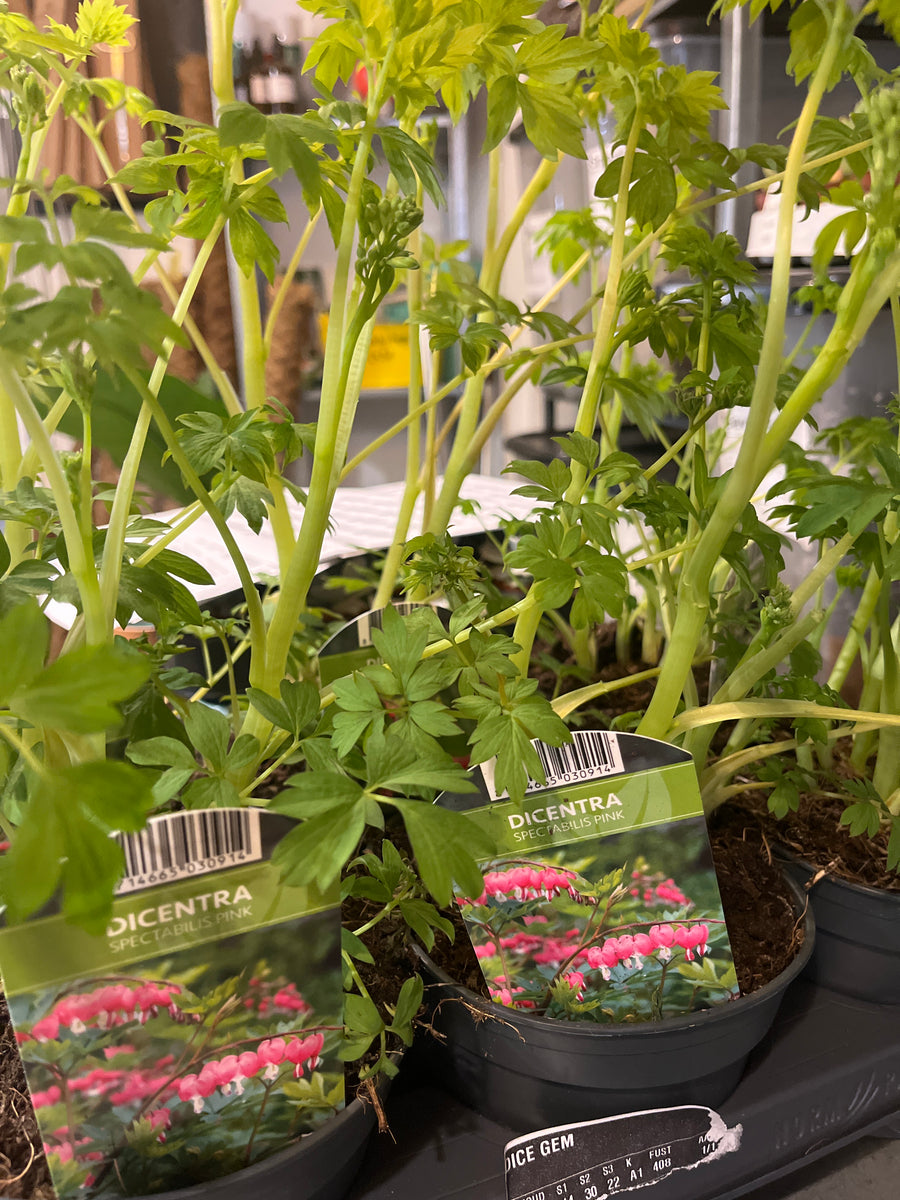 A perennial that forms clumps and grows up to 1m tall. It creates a mound of fleshy mid-green leaves, about 40cm long, with leaflets that are cut or lobed. Heart-shaped flowers in shades of rose-red, purple-pink, or white dangle from succulent stems in late spring or early summer.