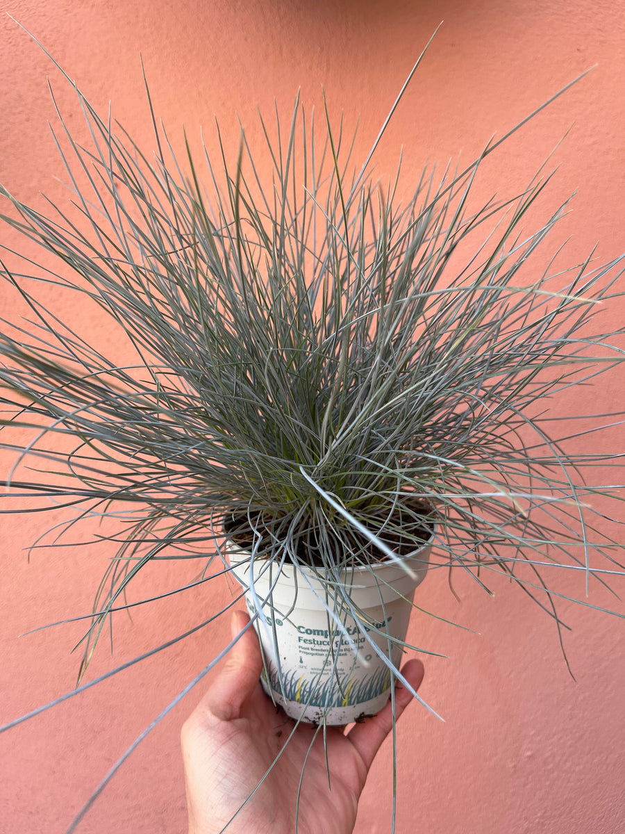 Festuca ‘Compact Blue’: tidy, tufted, and ice-cool in colour. This compact ornamental grass forms neat mounds of steely blue foliage that hold their shape all year. Low-maintenance and perfect for borders, pots, or modern planting schemes.