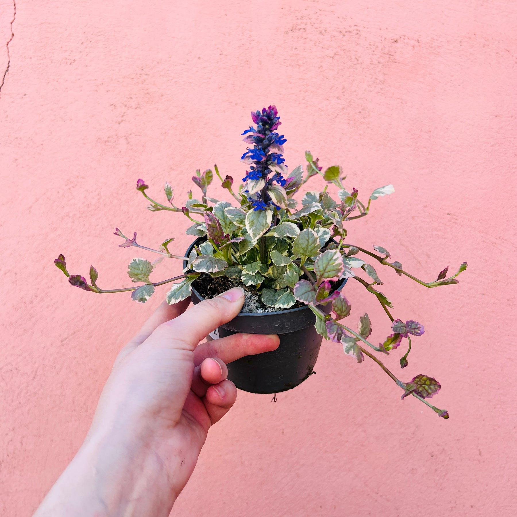 A reliable, low-growing evergreen perennial, Ajuga reptans ‘Burgundy Glow’ is valued for its striking variegated foliage in tones of green, cream, and flushed pink. It forms a dense mat over time, making it an excellent choice for ground cover, edging paths, or filling gaps in borders.
