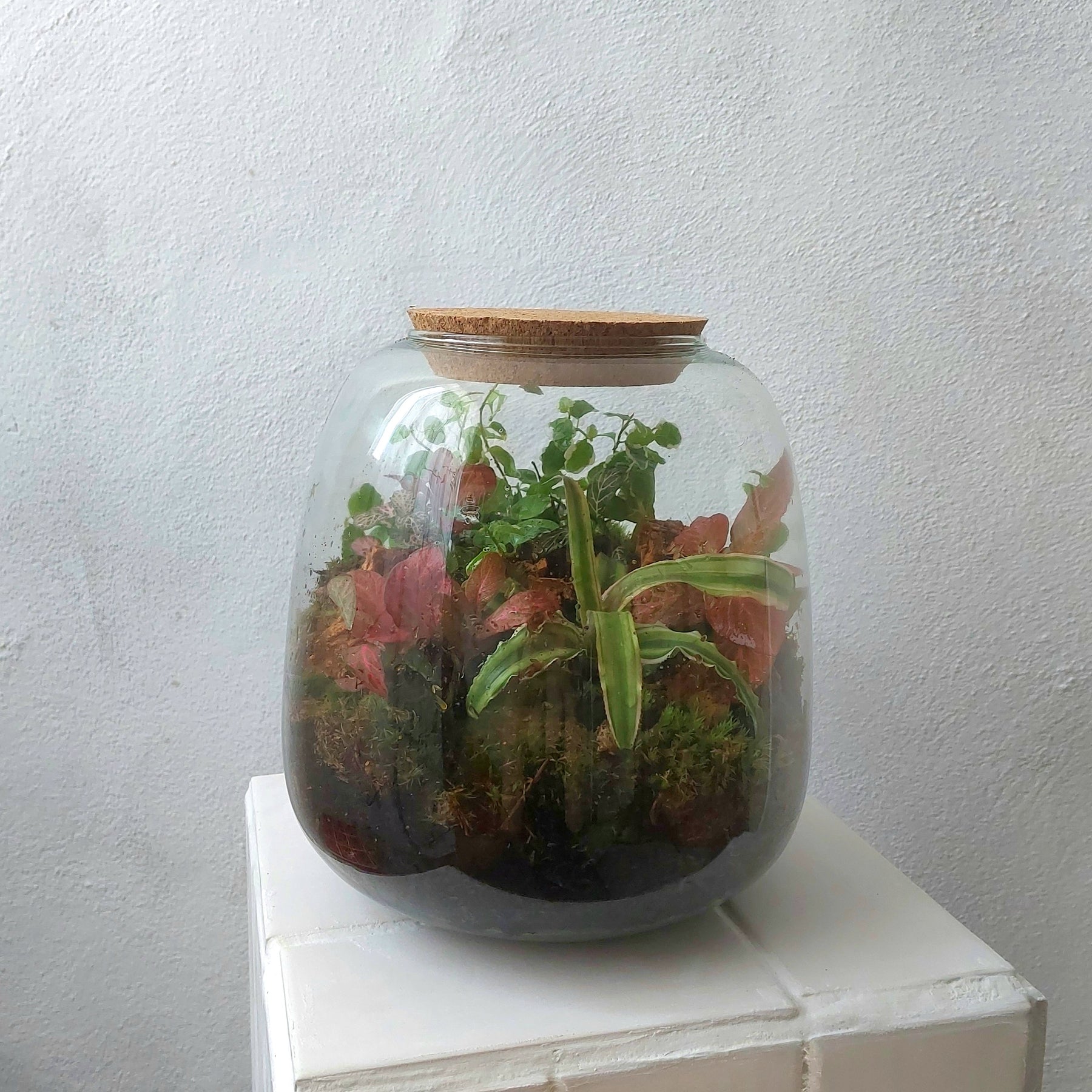 Made in-house and entirely unique, the Nana terrrarium is made with high quality, eco-friendly glass. Caring for your terrarium is super easy- provide bright, indirect light and watch it grow! Watering is generally not required as they are an enclosed ecosystem, however trimming may be necessary in the future. All terrariums come with a care leaflet.