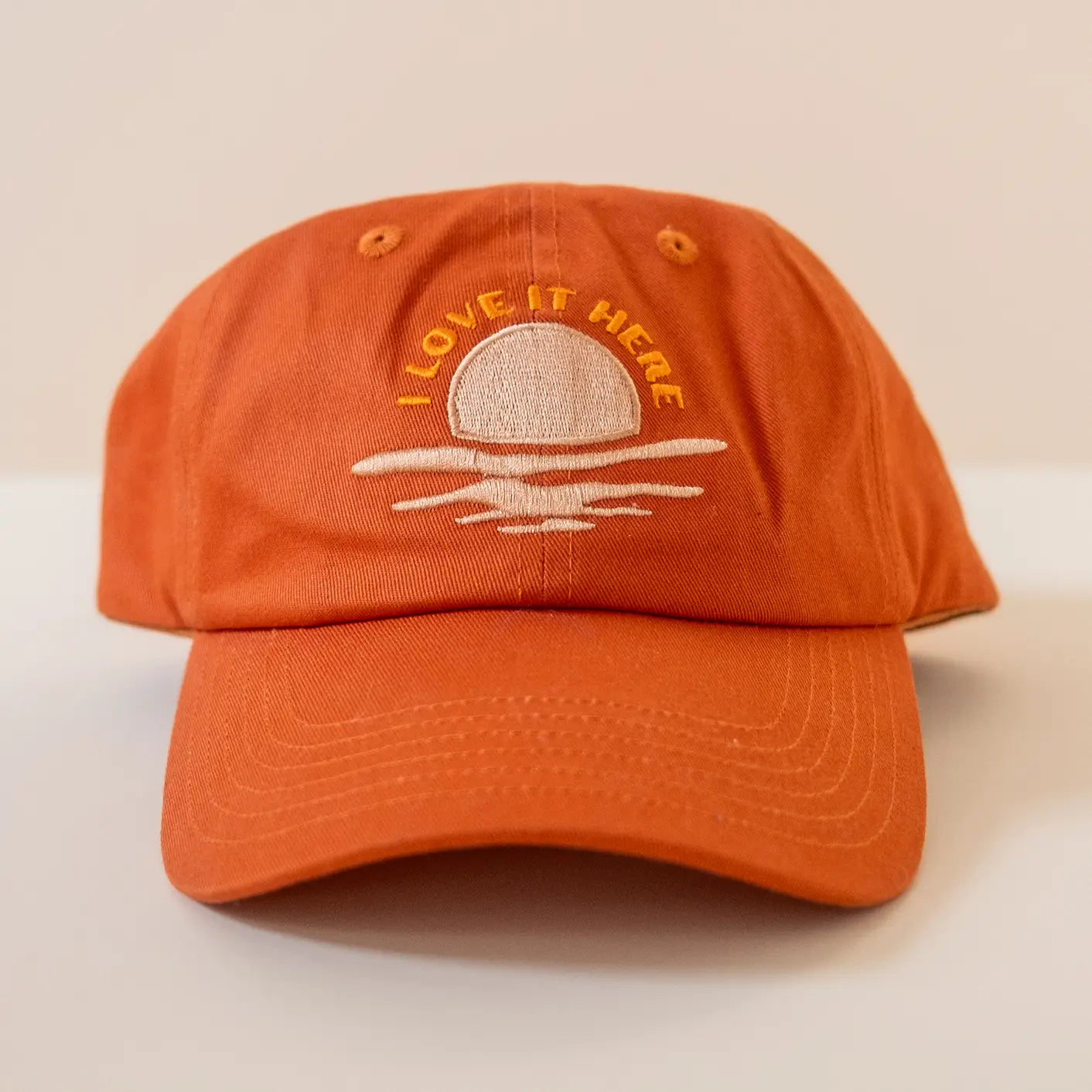 A laid-back cotton cap with sunny vibes. This burnt orange baseball hat features a cheerful embroidered sun and the words “I Love It Here” — the perfect motto for plant lovers, gardeners, and good-vibes-only humans. With an adjustable strap and soft unstructured fit, it’s your new go-to for garden days, shop days, and everything in between.
