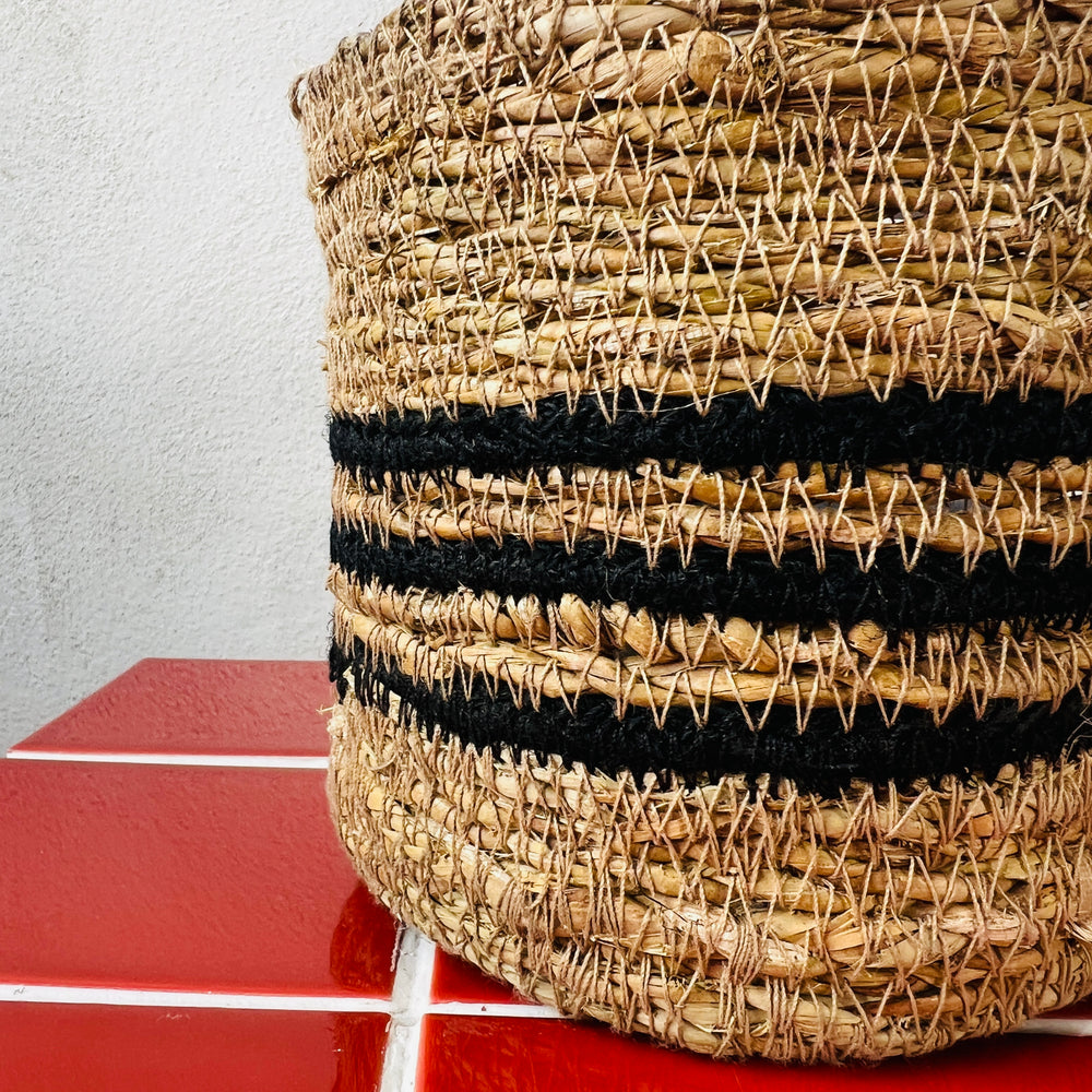 Black Stripes Pien Pot D12.5 x H12cm – Natural Striped Basket Pot