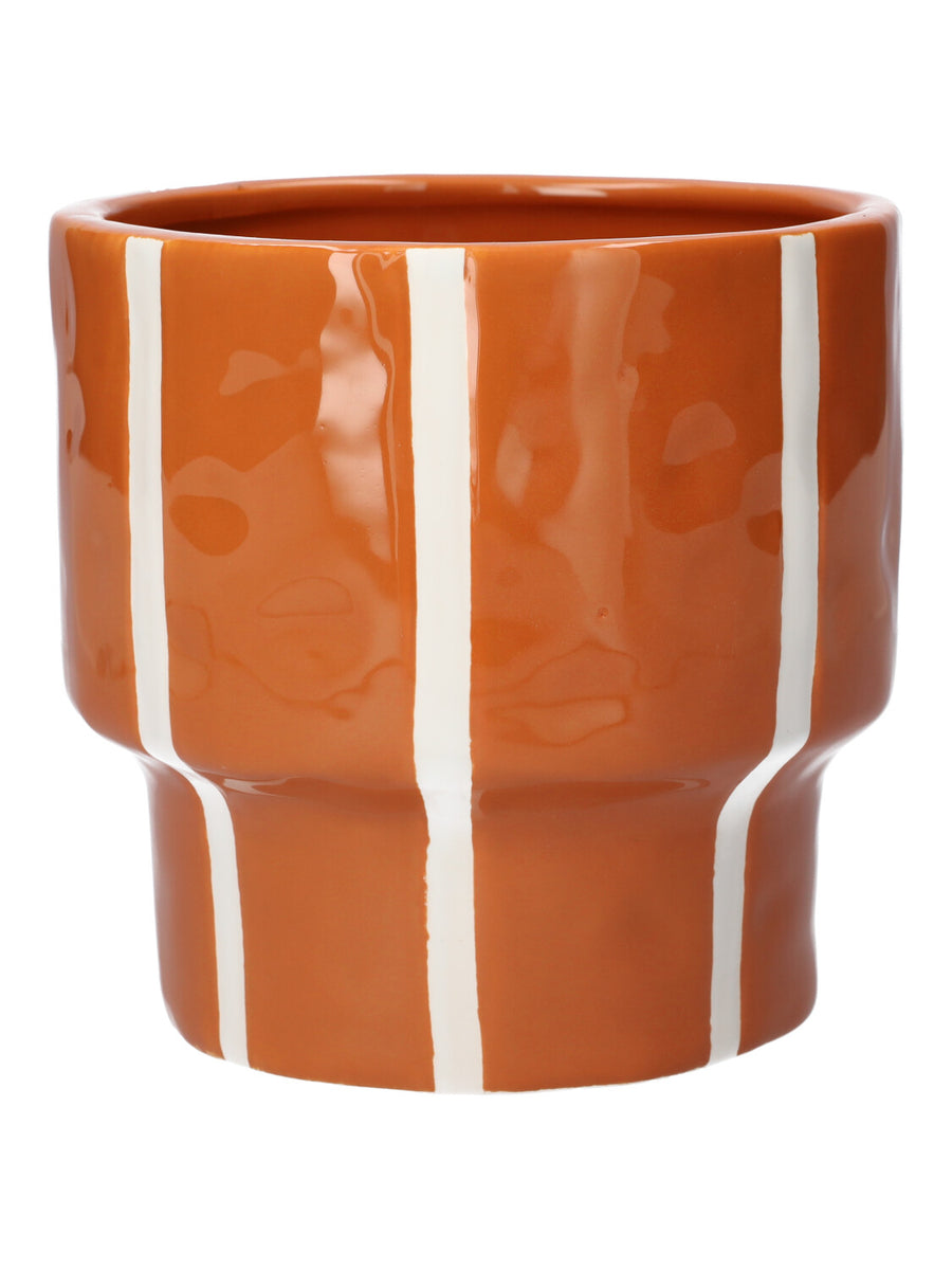 Terracotta tones, but make it glossy. The Ariona pot in warm terra orange features bold white stripes and a glazed finish that adds instant charm to any space. A playful patterned pot that's perfect for mid-size houseplants or gifting.