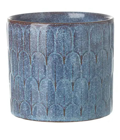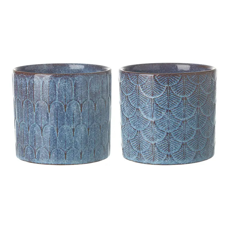 Pick your pattern—these 10 × 10 × 9cm blue beauties are here to add texture and charm to your plant gang. Each ceramic pot is finished with a deep indigo glaze and a tactile raised design—choose between fan-like arches or layered leaves for a subtle art deco feel. They're just the right size for smaller houseplants, cuttings, or baby succulents, and they shine brightest on windowsills, shelves, and tiny corners that need a little lift. Available in two styles. No drainage hole.