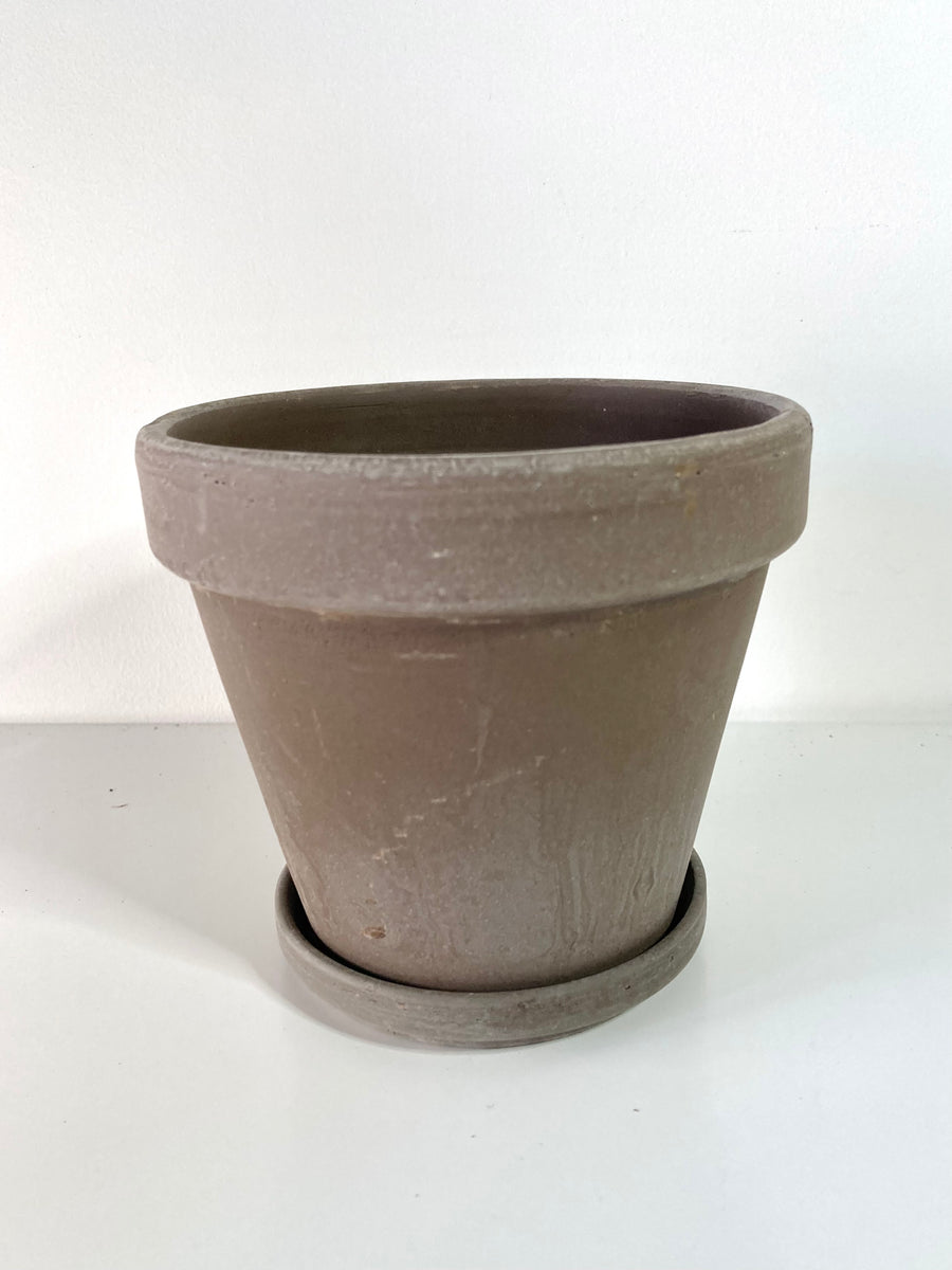 Spruce up your home with this Grey Terracotta Pot and Saucer! Not just another pot in the window, its terracotta construction adds a touch of sophistication to your plant collection. Complete with a matching saucer, it's the perfect way to add a little pottery to your plottery!