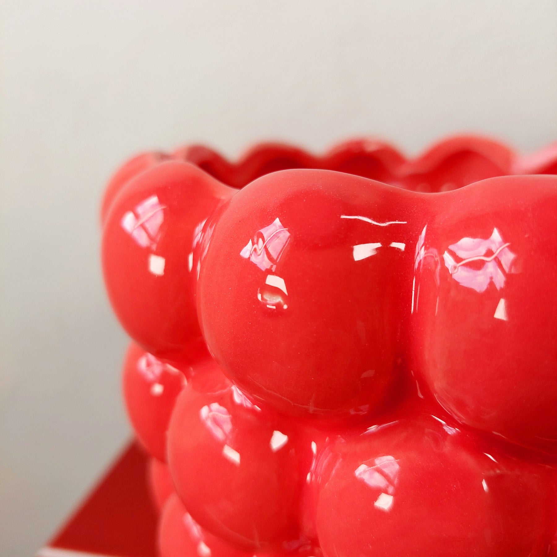 The Henny Pot is a bold, playful ceramic planter wrapped in glossy bubble-like texture that gives any shelf or plant corner instant personality. Its vibrant coral finish makes every plant pop, while the scalloped rim adds a soft, sculptural touch. Perfect for statement houseplants and anyone who loves a bit of colour with their greenery, this pot is an easy way to brighten your space and create a standout focal point.