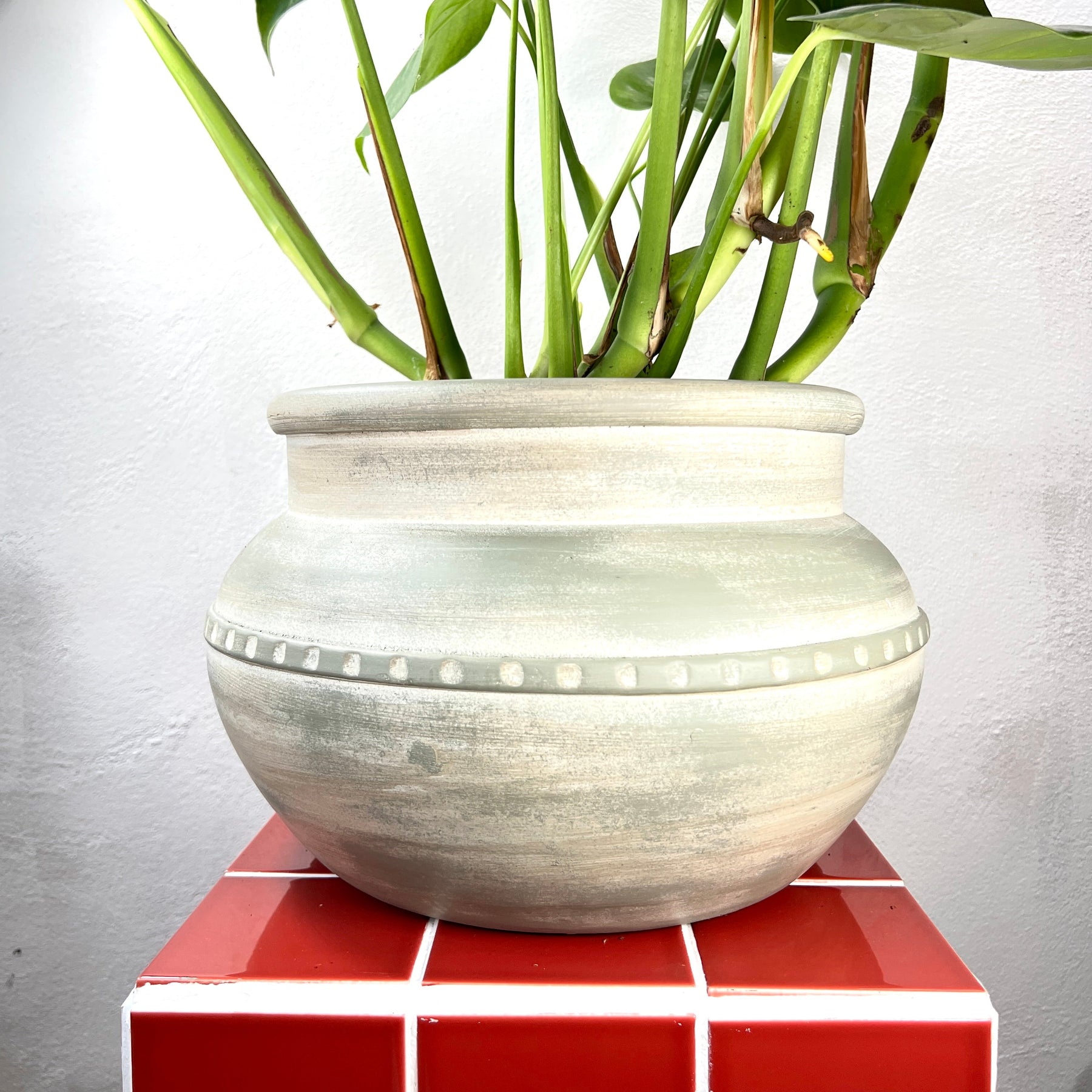 The Malvane pot in soft light grey brings a clean, modern look to any plant display. With its wide diameter and rounded shape, it’s perfect for housing larger statement plants or groupings of medium-sized ones. The neutral tone makes it versatile and easy to pair with any interior style, from minimal to boho.