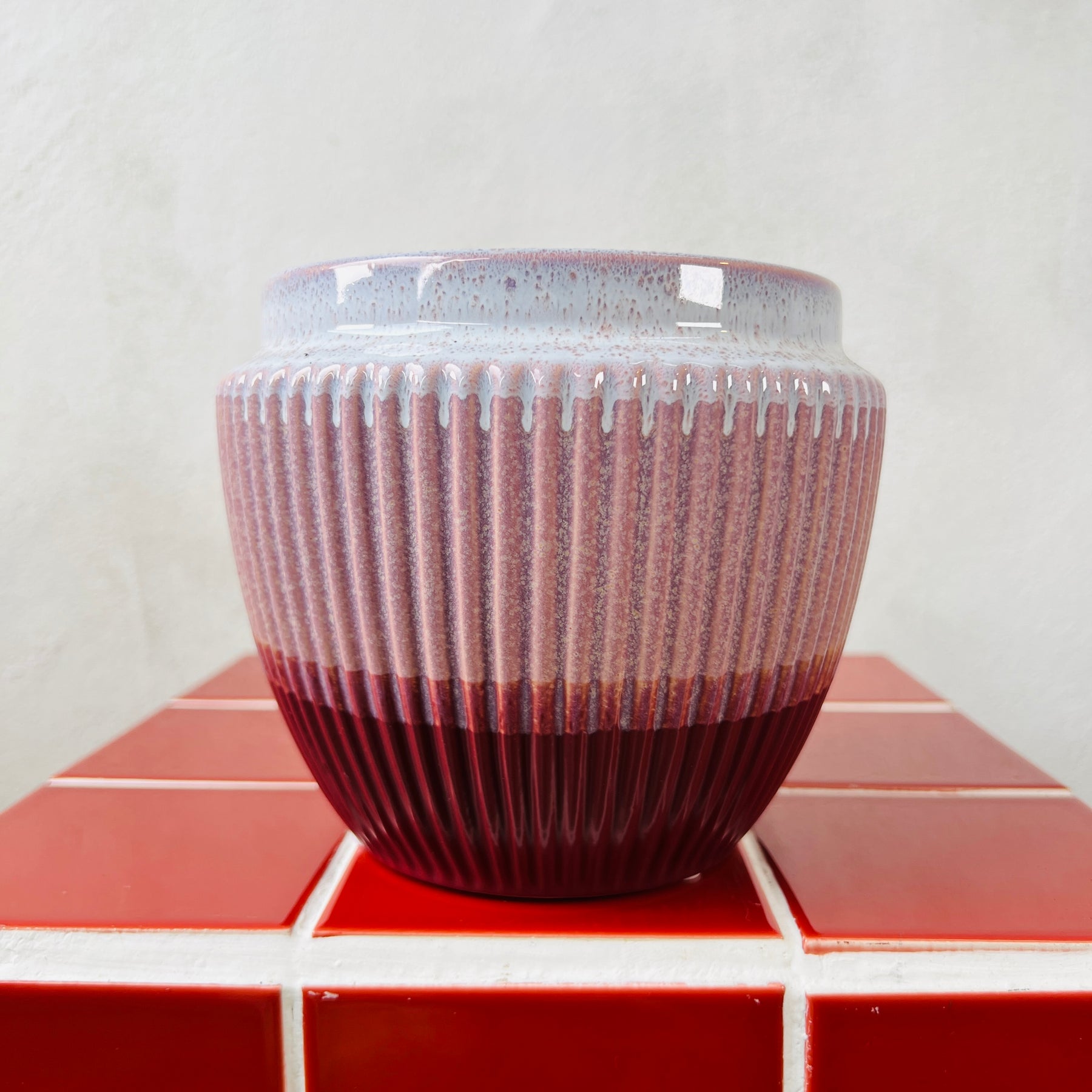 Add soft colour and texture to your plant styling with our 12cm Ribbed Ceramic Pots, a beautifully glazed collection designed to elevate medium houseplants with ease. Each pot features a rounded silhouette, vertical ribbing, and a glossy hand-finished glaze that blends warm neutrals with subtle colour blocking. Available in Green & Cream, Lilac & Berry, Blush Nude, and Honey Amber, these pots are perfect for 10–12cm nursery plants such as peperomia, ferns, pothos, calatheas, and trailing plants. Their smooth interior makes sliding a nursery pot in and out simple, while the ribbed exterior adds a modern, tactile finish that suits any home style. A lovely gift-ready pot and an eye-catching choice for shelves, desks, and sideboards.