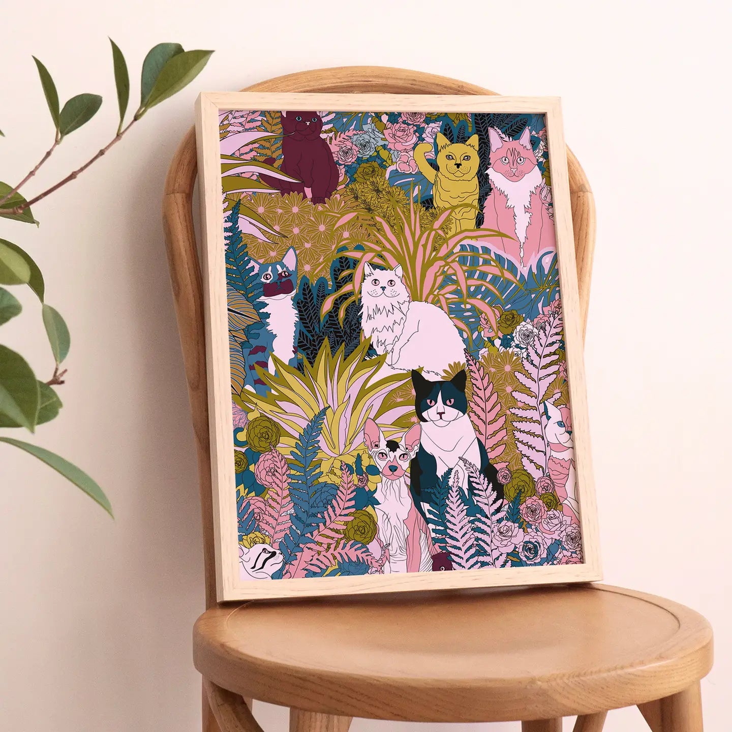 Garden Cats Boho Kids Animal Whimsical Plants Art Print
