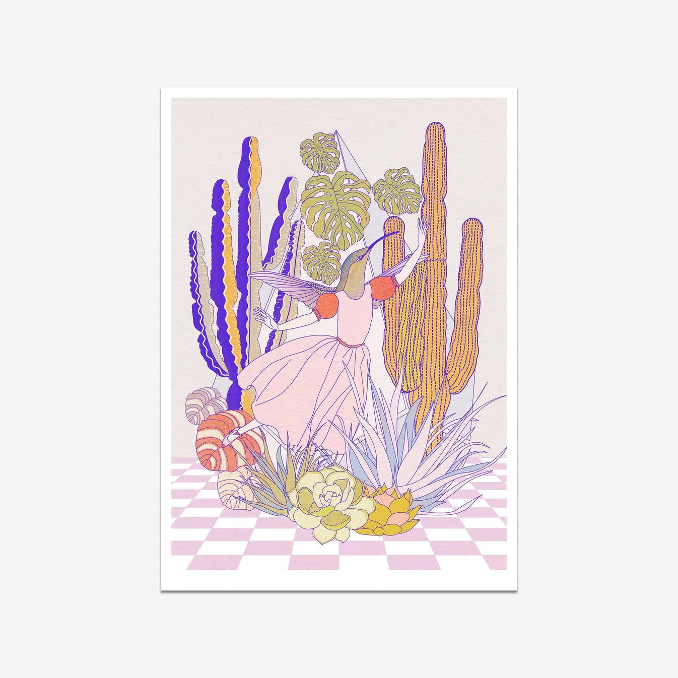 Hummingbird Terrarium Boho Style Botanical Art Print