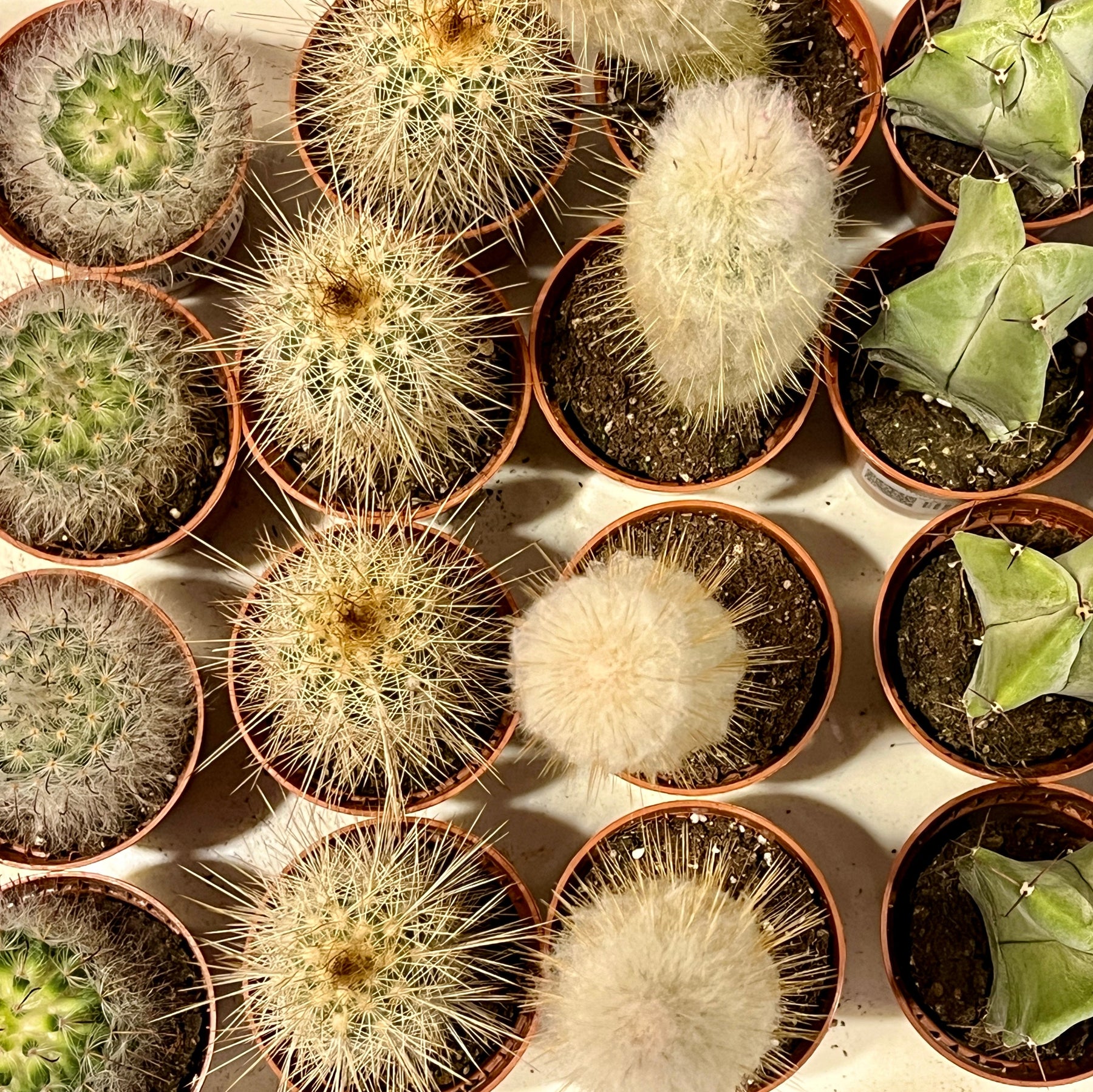 Happy between 18–30°C. Some cacti can handle chilly temperatures if kept totally dry, but our mini cacti prefer to stay above 10°C — just to keep things fuss-free