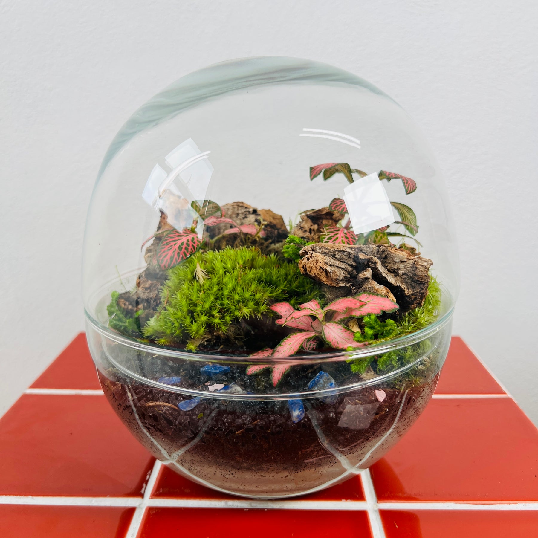 Made in-house and unique, the Bio-dome terrarium is made with high-quality, eco-friendly glass. Caring for your terrarium is super easy- provide bright, indirect light and watch it grow! Watering is generally not required as they are an enclosed ecosystem; however, trimming may be necessary in the future. All terrariums come with a care leaflet.