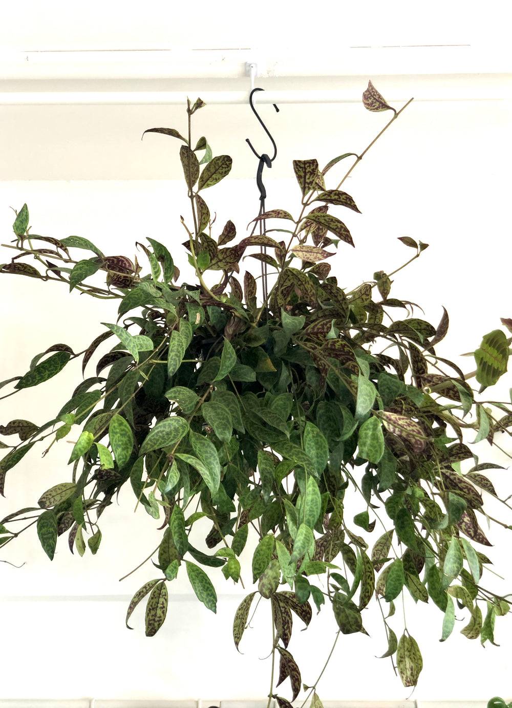 Native to the humid forests of Southeast Asia, it thrives in bright, indirect light and brings a subtle tropical touch to shelves or hanging pots. Flowers are rare indoors, but the foliage steals the show.